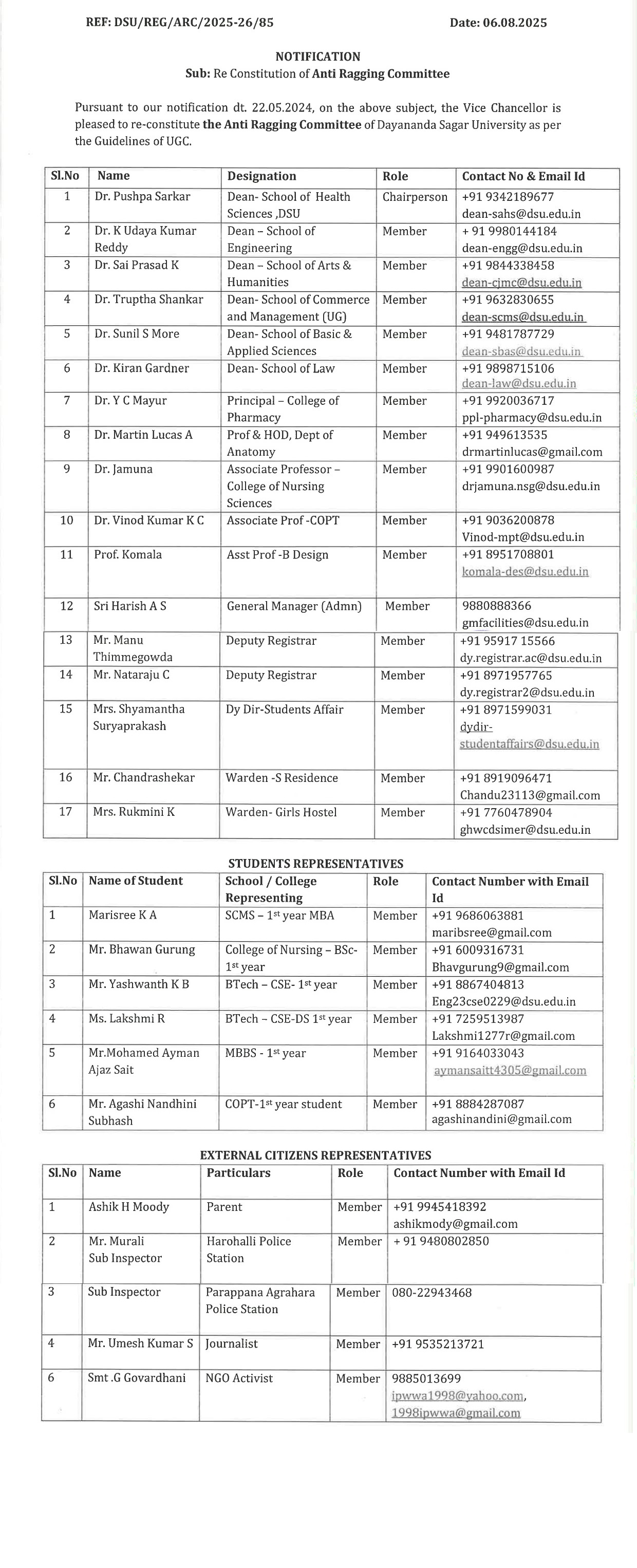 Anti Ragging Committee