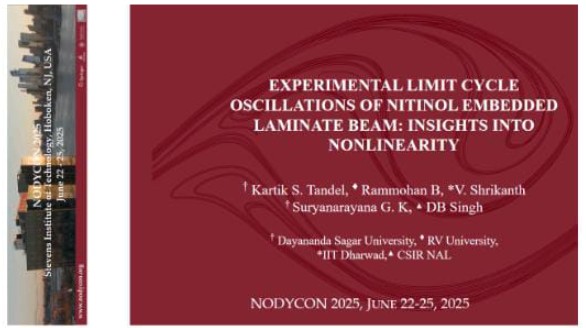 A collaborative research paper authored by Prof. Kartik S. Tandel (AE–DSU), Prof. Ramamohan Bhanumurthy (RVU), Prof. D. B. Shrikanth (IIT Dharwad), Prof. G. K. Suryanarayana (AE–DSU), and Dr. D. B. Singh (CSIR-NAL) was presented at the 4th International Nonlinear Dynamics Conference (2025) in New Jersey, USA, from June 22–25.