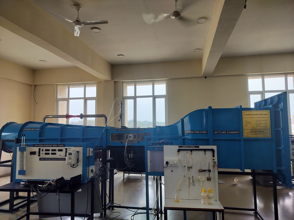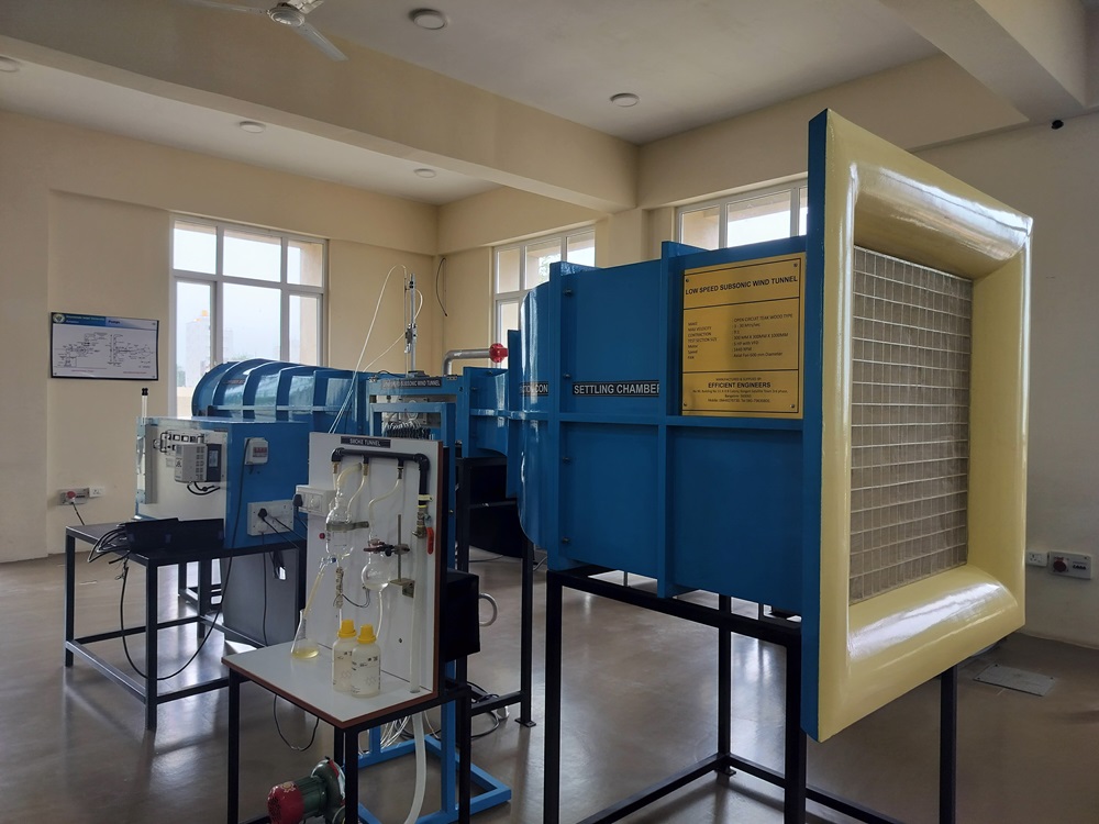 The Wind Tunnel Laboratory provides an advanced platform for studying aerodynamic principles and fluid mechanics through hands-on experimentation. Featuring a low-speed, open-circuit, suction-type wind tunnel, the lab enables precise airflow analysis for educational and research applications. Equipped with essential components like a test section with transparent viewing panels, a contraction chamber, a diffuser, and an axial flow fan, it facilitates a range of experiments including pressure distribution studies, smoke flow visualization, drag measurements, and boundary layer analysis on airfoils and bluff bodies. By integrating modern instrumentation and rigorous methodologies, the lab plays a crucial role in developing a comprehensive understanding of aerodynamics, supporting both academic learning and industrial research in aerospace engineering