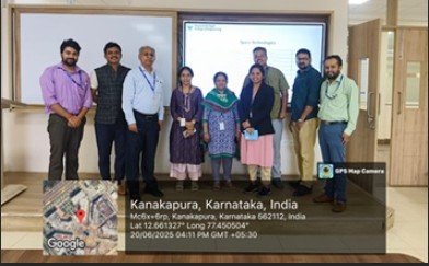 On July 14, a strategic meeting was held at the Digital Twin Lab with Dassault Systèmes La Fondation to strengthen academic-industry collaboration. Discussions included the “Connect Next” Workshop, support for the Digital Twin Lab, global internships, curriculum enhancement, joint research, and start-up support, with Dr. Nagaraja S. R., Mr. Huzefa Salim, and Mr. Praveen Bhagoji participating.