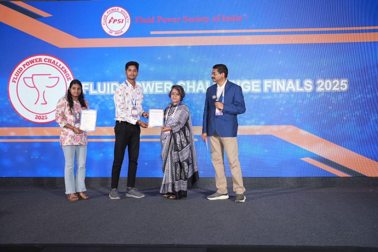 Mr. Vijay Kumar A N and Ms. Yashaswini U, students of the 3rd year, participated in a national-level quiz competition organized by the Fluid Power Society of India (FPSI) and achieved an impressive 4th place among 125 teams from across the country. The finals of the competition were held on 10th October 2025. They were mentored by Dr. B. V. N. Ramakumar.