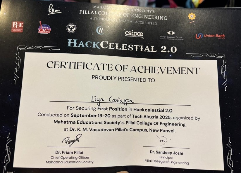 | 19-09-2025 to 20-09-2025 | Hackathon (Prize money: 50K/-) | Team Name: Neural, Nomads | ![]() |