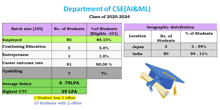Placements CSE (AI & ML) OverviewVision and Mission PEO's, PO's and PSO'sMessage From Dept ChairpersonAIML NewsletterFaculty ListSeats & EligibilityProgram Curricula News & EventsSyllabusCourse Flow ChartBoard of Studies Research And PublicationsAIML PlacementsAcademic Calendar