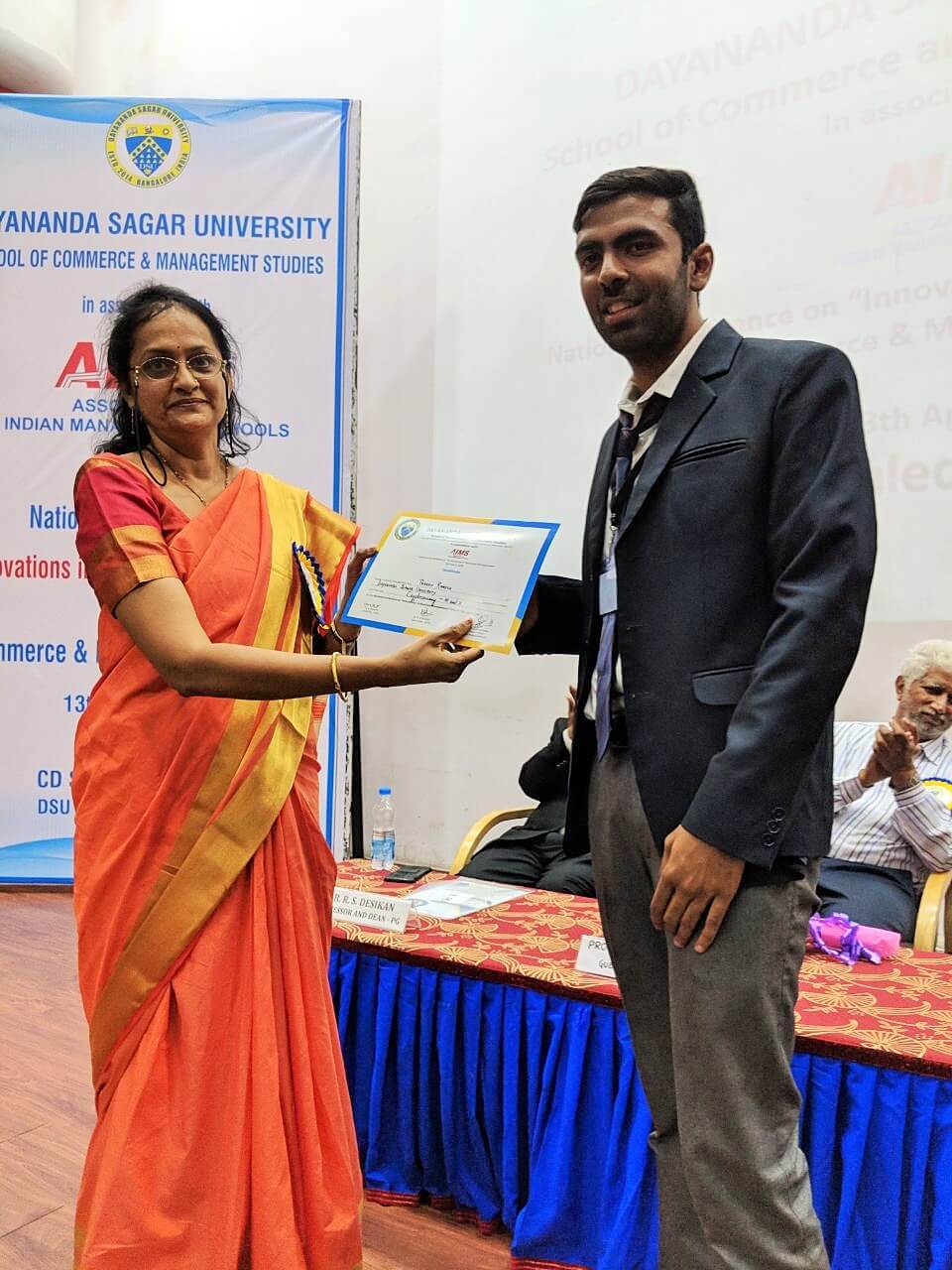 The School of Commerce and Management Studies, DayanandaSagar University, had organized and hosted the first National Student's Conference on “Innovations in Business Management” for Commerce and Management students on 13th of April, 2018 in association with Association of Indian Management Schools (AIMS). The theme for the conference was “Innovation in Business Management”. Shri.Ghaliswamy, Secretary, DayanandaSagar Group of Institutions, emphasized that sharing of knowledge and learning was very imperative for students. He insisted on innovation which is rather critical for continuous process and success. Our Chief Guest, Dr.A.N.N.Murthy, Vice-Chancellor, DayanandaSagar University stressed that students should have innovative instinct which has to be developed to carve a niche for themselves in the market. He stated that transforming of knowledge into a product is essential for improving the effectiveness of any organization. Our Guest of Honour, Dr. C.Manohar, Chairman – AIMS, expressed that positive vibration should be felt by the students by being innovative.