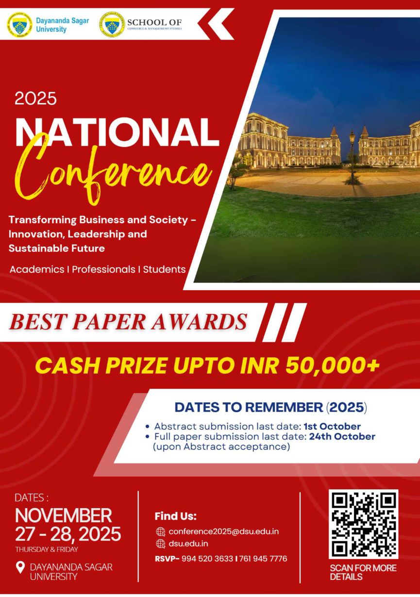 The Conference on Business and Leadership will take place under the theme-‘Transforming Business and Society: Innovation, Leadership, and Sustainable Future’. The transformation of business and society through innovation, leadership, and a sustainable future is a strategic necessity for tackling complex global issues. It transcends conventional profit-driven models to adopt a comprehensive approach known as the triple bottom line, which evaluates environmental and social impacts in conjunction with economic performance. Effective leadership is essential for navigating the intricacies of business. The transformation of business and society presents considerable challenges, yet it also provides vast opportunities for innovation and growth. The Conference seeks to unite individuals from academic, research, policy, practice, and business sectors to exchange practical solutions for achieving a sustainable future. This conference is part of a larger initiative and vision by the UN to confront global challenges and promote a sustainable future through the Sustainable Development Goals (SDGs) by 2030. The conference will concentrate on six themes. The conference is expected to lead to voluntary commitments and the establishment of new partnerships.