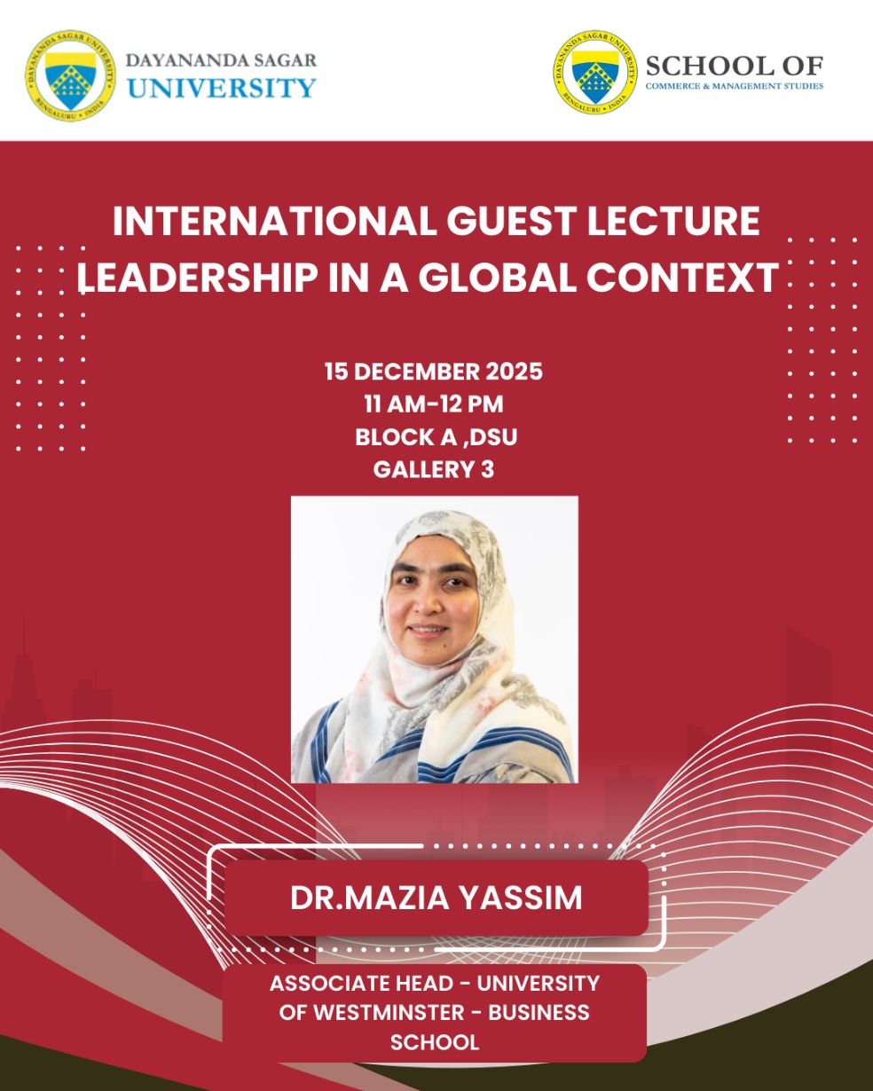 International Guest Lecture on Leadership by Dr. Yassim Mazia (University of Westminster) at Dayananda Sagar University (DSU), School of Commerce & Management Studies