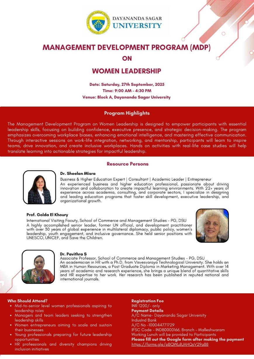 Dayananda Sagar University invites you to a Management Development Program (MDP) on Women Leadership