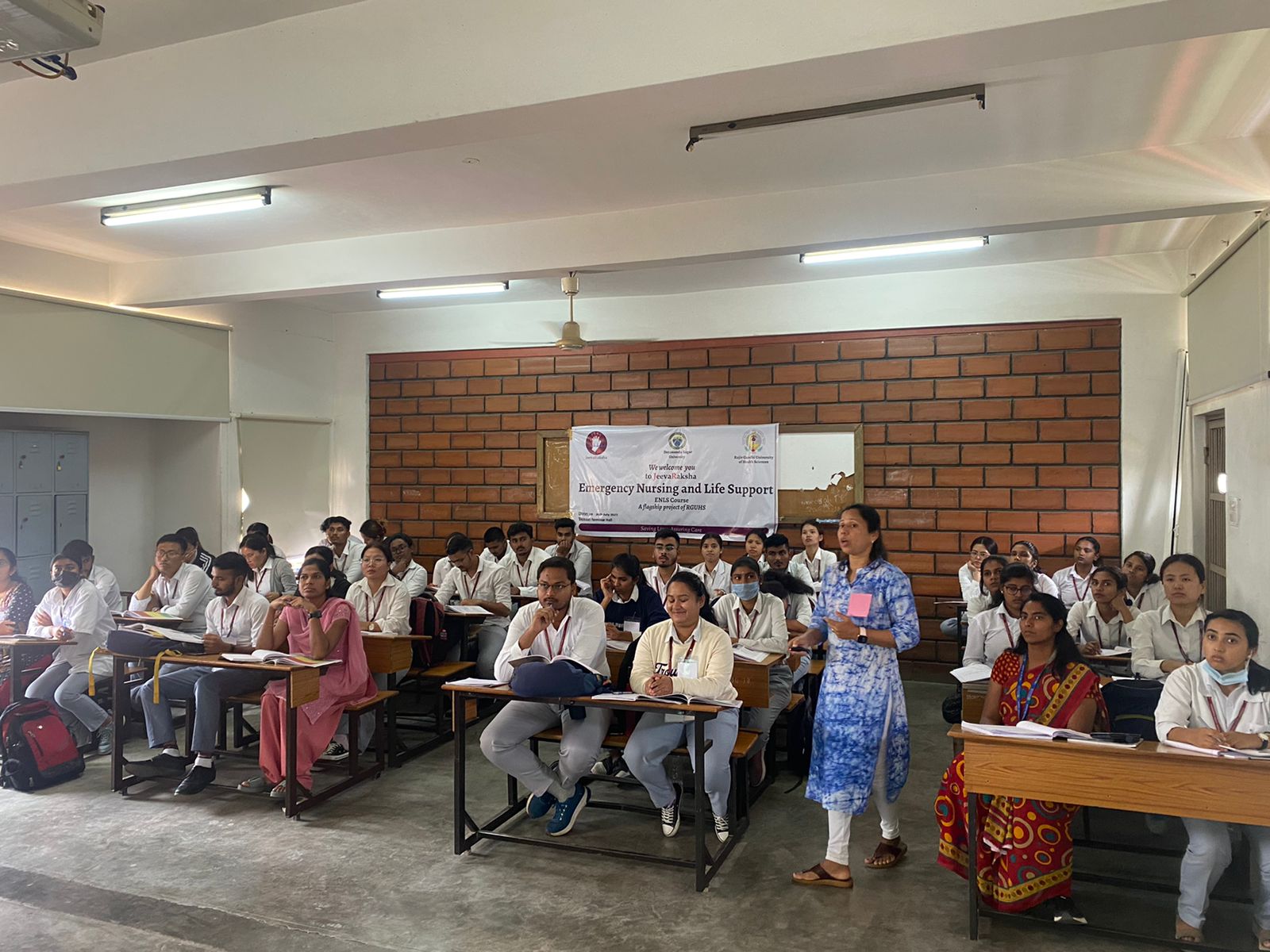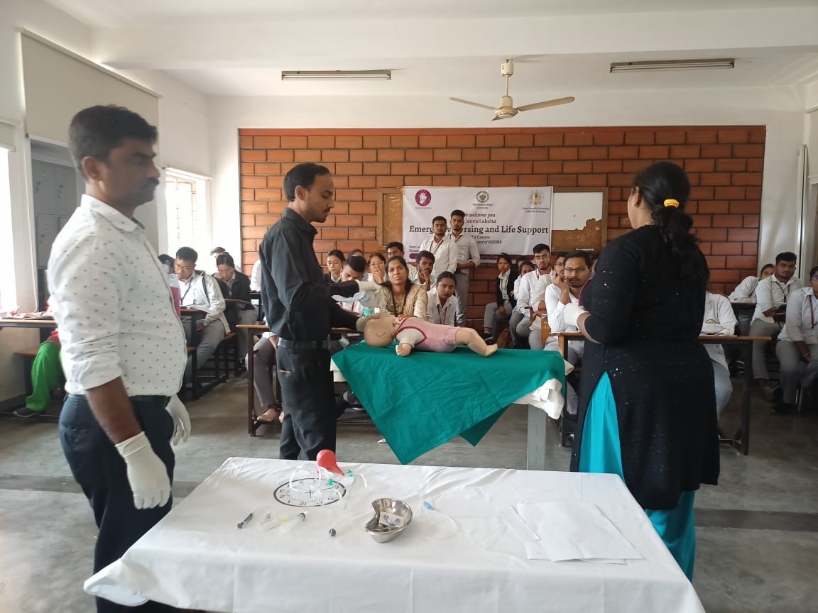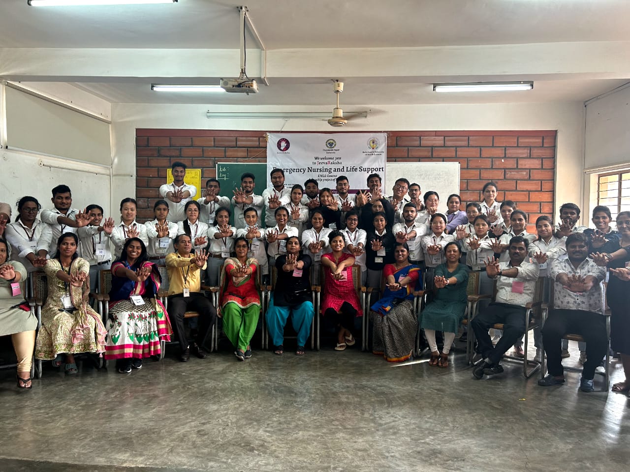 The College of Nursing Sciences, DSU in association with JeevaRaksha- RGUHS organized Workshop on Emergency Nursing and Life Support for B.Sc. Nursing final year students and faculty from 18/07/2023 to 20/07/23 for 3 days at Seminar Hall, KS layout campus, Dayananda Sagar University. The participants were given scenarios to practice on trauma management and communication skills by using ISBAR, CUS, SPIKES techniques. Practical Examinations was conducted on Air way management & Cardiac emergencies for all the participants.
