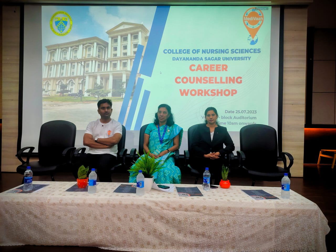 The College of Nursing Sciences in association with Medivaah group organized “Workshop on Career Counseling” for B.Sc. Nursing IV year & M.Sc. Nursing II year students on 25.07.23 at F Block Auditorium, CDSIMER at 10 am. The Medivaah group volunteers helped the students to make individual resume and also helped with profile creating activities on Medivaah and uploading introductory videos on the app.