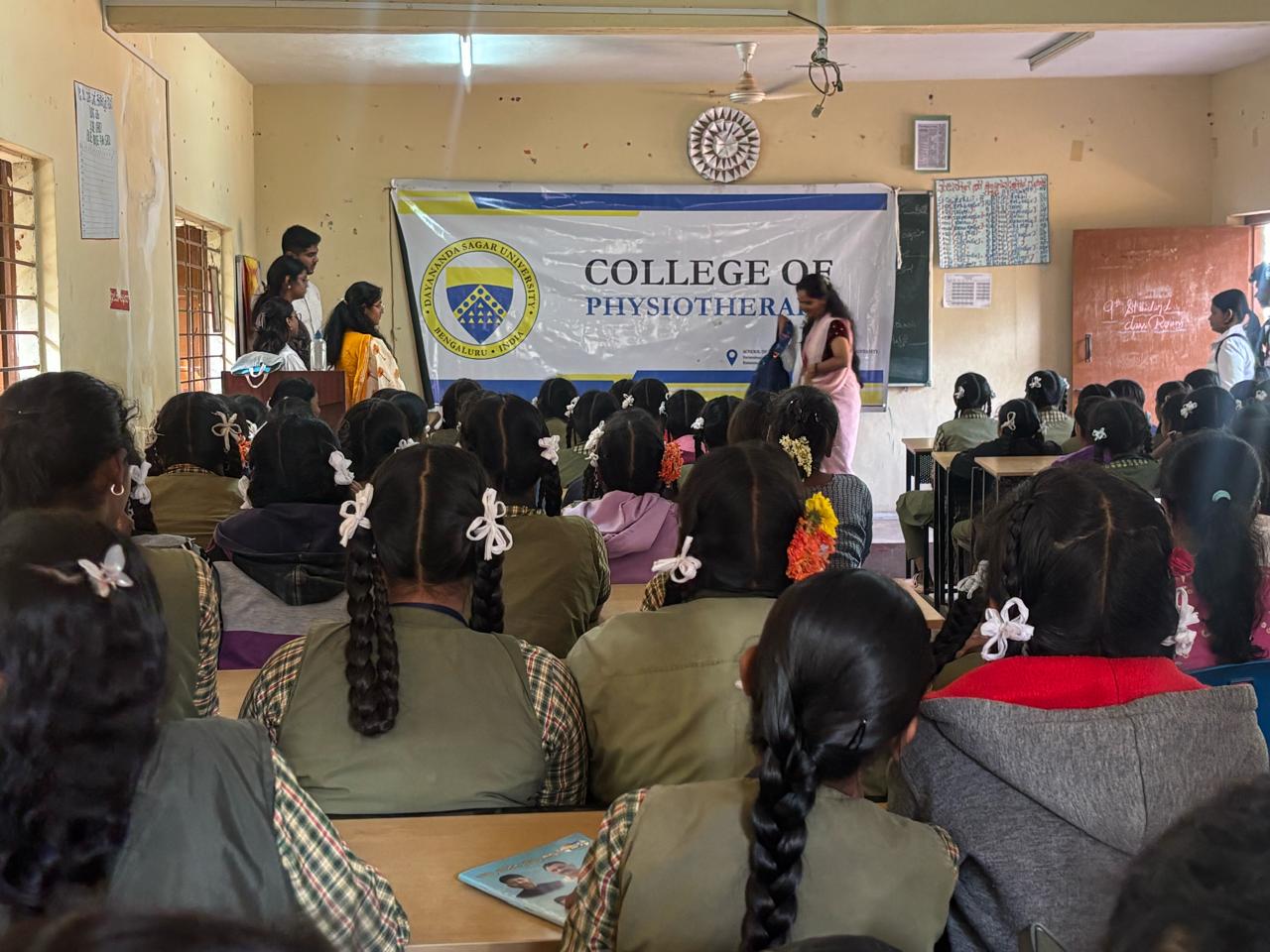 An Event was organized by College of Physiotherapy, DSU on account of National education day on 11th Nov 2021 at Dayananda Sagar International School ICSE board Bengaluru. This event was to create awareness in teachers regarding women’s health. Program started with the interaction to teachers followed by brief introduction about women’s health.