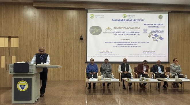 Dayananda Sagar University hosted the National Space Day Celebrations 2025 to commemorate India’s space achievements and inspire young minds. Dignitaries, faculty, researchers, and students attended the event, which featured inspiring addresses by eminent personalities from ISRO, including Mr. M. Venkata Rao and Mr. M. S. Srinivasan, who spoke on satellite development, innovation, and the future of space technologies.