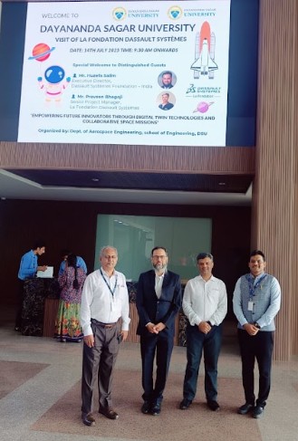 On July 14, a strategic meeting was held at the Digital Twin Lab with Dassault Systèmes La Fondation to strengthen academic-industry collaboration. Discussions included the “Connect Next” Workshop, support for the Digital Twin Lab, global internships, curriculum enhancement, joint research, and start-up support, with Dr. Nagaraja S. R., Mr. Huzefa Salim, and Mr. Praveen Bhagoji participating.