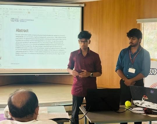 On July 23, Mr. B. Kartik, Mithun P., and Nikhil N. P. presented a research paper titled "Advancing Wildlife Conservation: AI-Driven Weight Estimation Drones for Accurate and Efficient Wildlife Management" at the IEEE Space Conference 2025, under the guidance of Prof. Sripad Kulkarni.