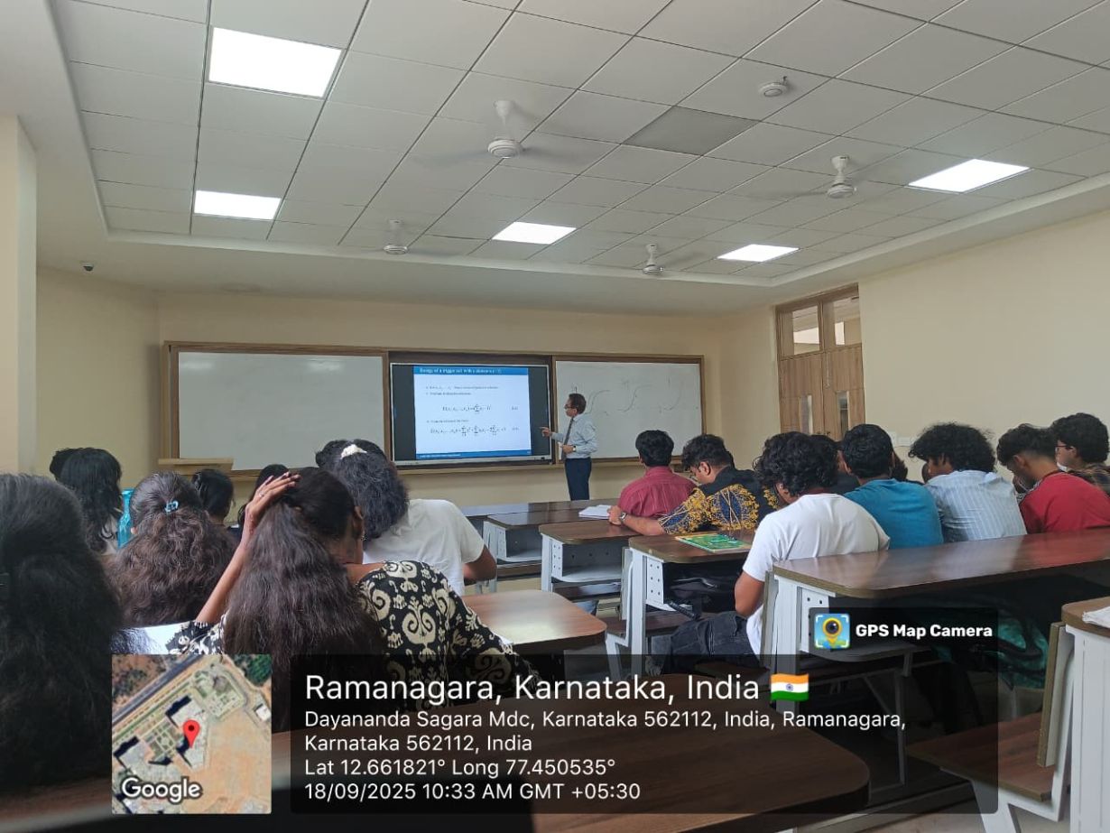 Prof. Radhakrishna Prabhu delivered a guest lecture on “Smart Sensors for a Smarter Planet”, highlighting applications of robotics and AI in healthcare, renewable energy, and smart infrastructure. The session connected sensor intelligence with sustainability and future technologies. Students learned about sensor fusion, data-driven decision-making, and interdisciplinary applications.