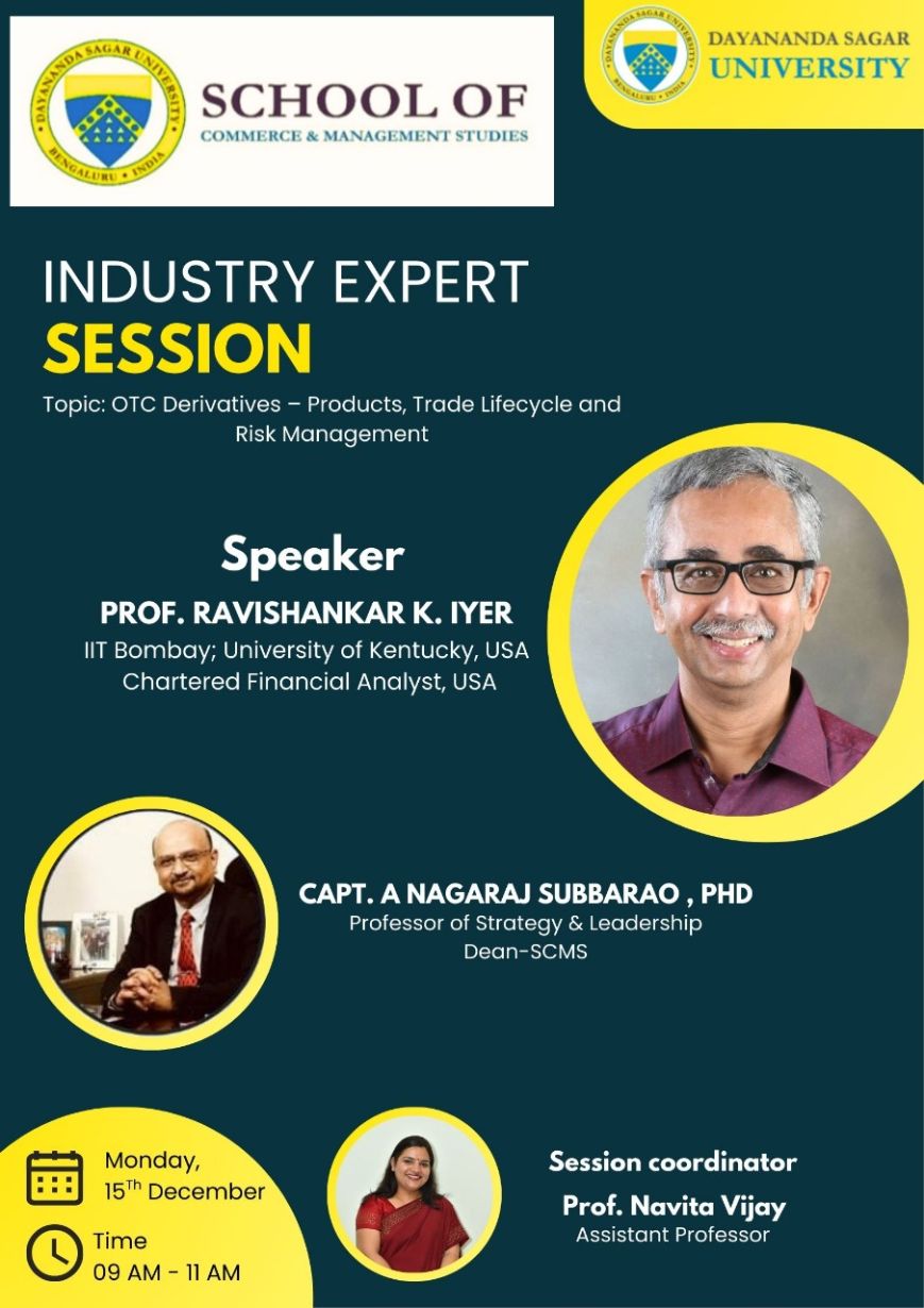 An Industry expert session in the course Financial Derivatives and Risk Management Scheduled on Monday, 15th December, 2025, from 9 am to 11 am. The title of the gust session is: "OTC Derivatives – Products, Trade Lifecycle and Risk Management".