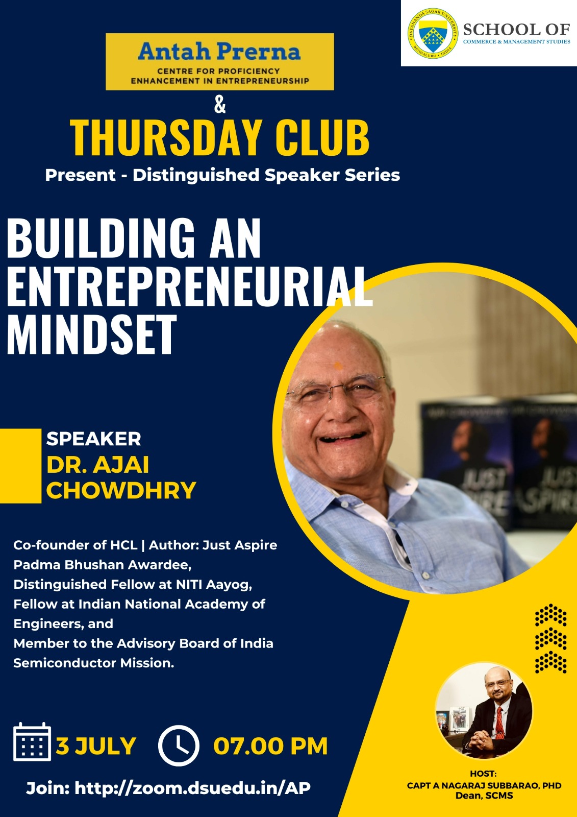 SCMS DSU to host Business Standard Insight Talks with Renowned Entrepreneur Mr C.K. Kumaravel on 7th August