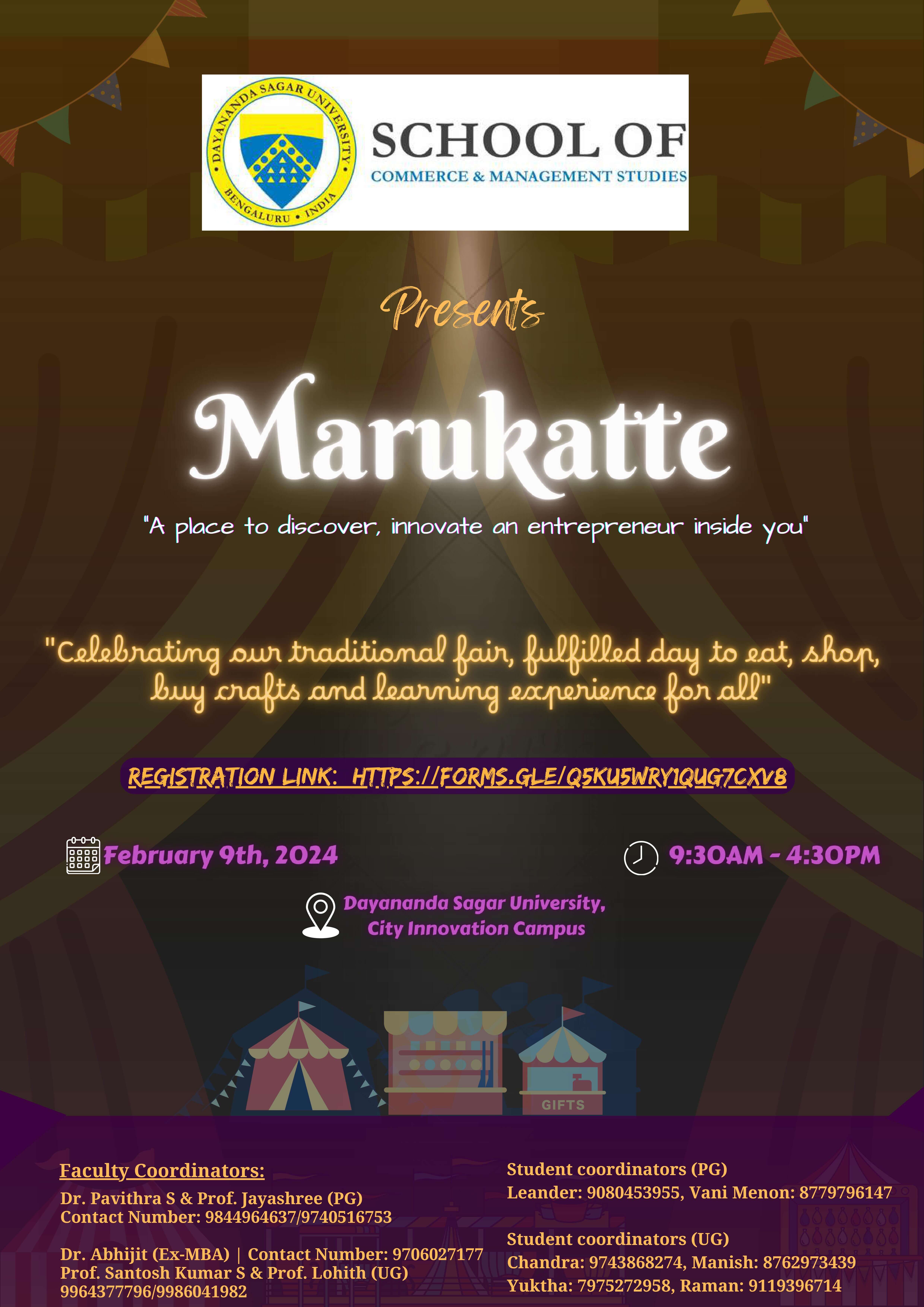 School of Commerce and Managements Studies Presents Marukatte – 2024 A place to discover, innovate an entrepreneur inside you “Celebrating our traditional fair, fulfilled day to Eat, shop, buy crafts and learning experience for all. We welcome you to the fair, where fun and excitement awaits at every turn! Whether you're here to indulge in delicious treats, explore captivating exhibits, this fair has something for everyone. Get ready to create unforgettable memories and immerse immense learning.